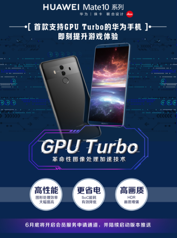 华为手机加持GPU Turbo,Mate 10系列手机成首款