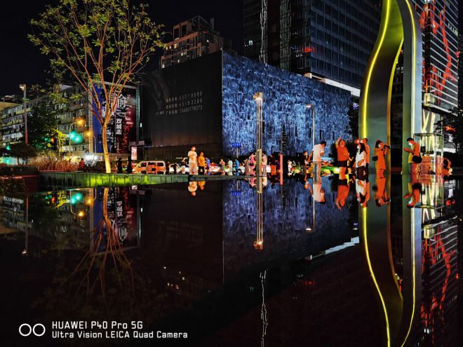 得益于1/1.28英寸CMOS和2.44μm大像素,华为P40 Pro感光面积比iphoness 11 Pro Max大297%、比HUAWEI P30 Pro大76%,提升暗光、大光比下的单像素进光量和动态范围。在夜景模式下可以微弱的光线下可拍出明亮画面,保证灯光处不过曝,暗处又不至于看不清。