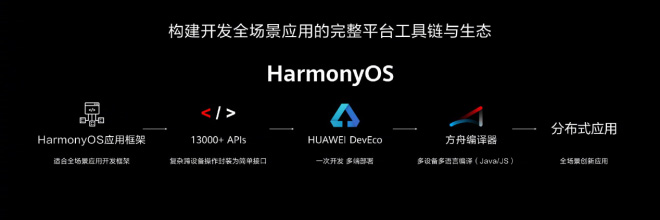 构建开发全场景应用的完整平台工具链与生态,,每一个软件的开发到完成都需要框架做支撑,一个适用于与全场景互联的框架非常重要,HarmonyOS2.0就拥有着适合全场景应用开发框架,将复杂跨设备操作封装为简单接口的13000+ APIs(接口),在这里所长就用自己有限的知识简单为大家解释一下API的作用,所谓接口,可以简单理解成App调用系统功能的“钥匙”,软件的功能开发都是通过接口的调用实现,如果跨设备操作需要非常复杂的程序代码才能实现,我想没有开发者愿意每次开发都去重新写一遍功能的实现代码,这个时候简单的接口就非常重要,只需要保证程序能调用系统提供的接口就能实现的功能,何乐而不为。此外还拥有高性能多语言编译(Java/JS)的方舟编译器,对于方舟编译器相信大家比较熟悉,早在手机上已经应用,性能上的提升也是非常可观。所长觉得吧,HarmonyOS 2.0全的场景创新性分布式应用才是最值得期待的。
