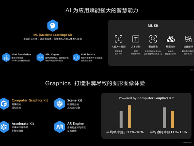 我们先从更好理解的,面向用户的应用说起。想象一部手机装不了微信、高德地图、美团、爱奇艺、微博、滴滴、淘宝和上图出现的这些APP,只有拍照效果和通话质量都特别棒,你会用吗?首先,没有HMS,就意味着手机上就没有一系列应用,相信看到这里一定不会用这样的手机,所以华为HMS生态蓬勃发展就显得异常重要,这就离不开全球开发者的支持,那么在大会上宣布全面开放HMS 5大根服务引擎的消息,意味着全球开发者就可以一同构建HMS新生态,AI为应用赋予强大智慧能力,Graphics让你感受到淋漓尽致的图形图像体验。