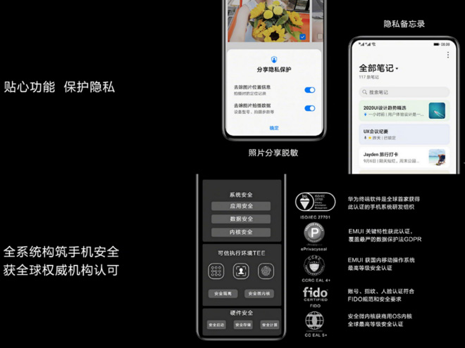 此外,EMUI 11还加入了创新科技守护隐私安全,同时全系统构筑手机安全获全球权威机构认可,TEE OS安全内核获全球商用OS内核的CC EAL5+认证。华为终端软件在设计、研发和维护全流程满足国际隐私标准的要求,为消费者的安全隐私保驾护航。同时还增加了更多贴心功能,增加了照片分享脱敏和隐私备忘录,用户通过华为分享发送给朋友照片时,可以选将照片拍照地址、时间以及设备等信息抹去;用户可以对备忘录中的单条笔记加密,通过身份验证后才能查看内容,更好保护你的小秘密。所长确定的说大家肯定都希望保护个人信息安全,但是对于这些功能你们觉得重要吗?