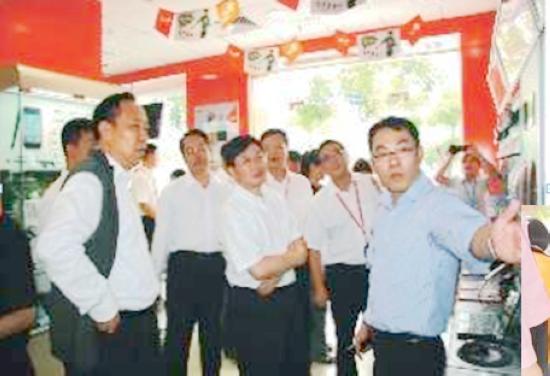 中国联通总经理陆益民视察捷通达门店,总经理甘浩川作介绍。