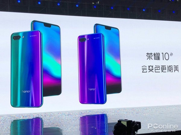 【PConline 资讯】今天下午14:30分,荣耀在上海东方体育中心举办『AI摄影革命』荣耀10的新品发布会,正式发布了新品荣耀10。本次Slogan为“会变色更潮美”,可见荣耀一直在坚持打造属于年轻人的设计潮流,主打AI摄影的荣耀10这次在机身配色上下了大功夫,官方表示用打造一台手机的时间来打造一片背壳,将其打造成“变色大师”,在新一波“刘海屏”里再次脱颖而出。此外荣耀MagicBook笔记本电脑也在本次发布会中首次亮相。