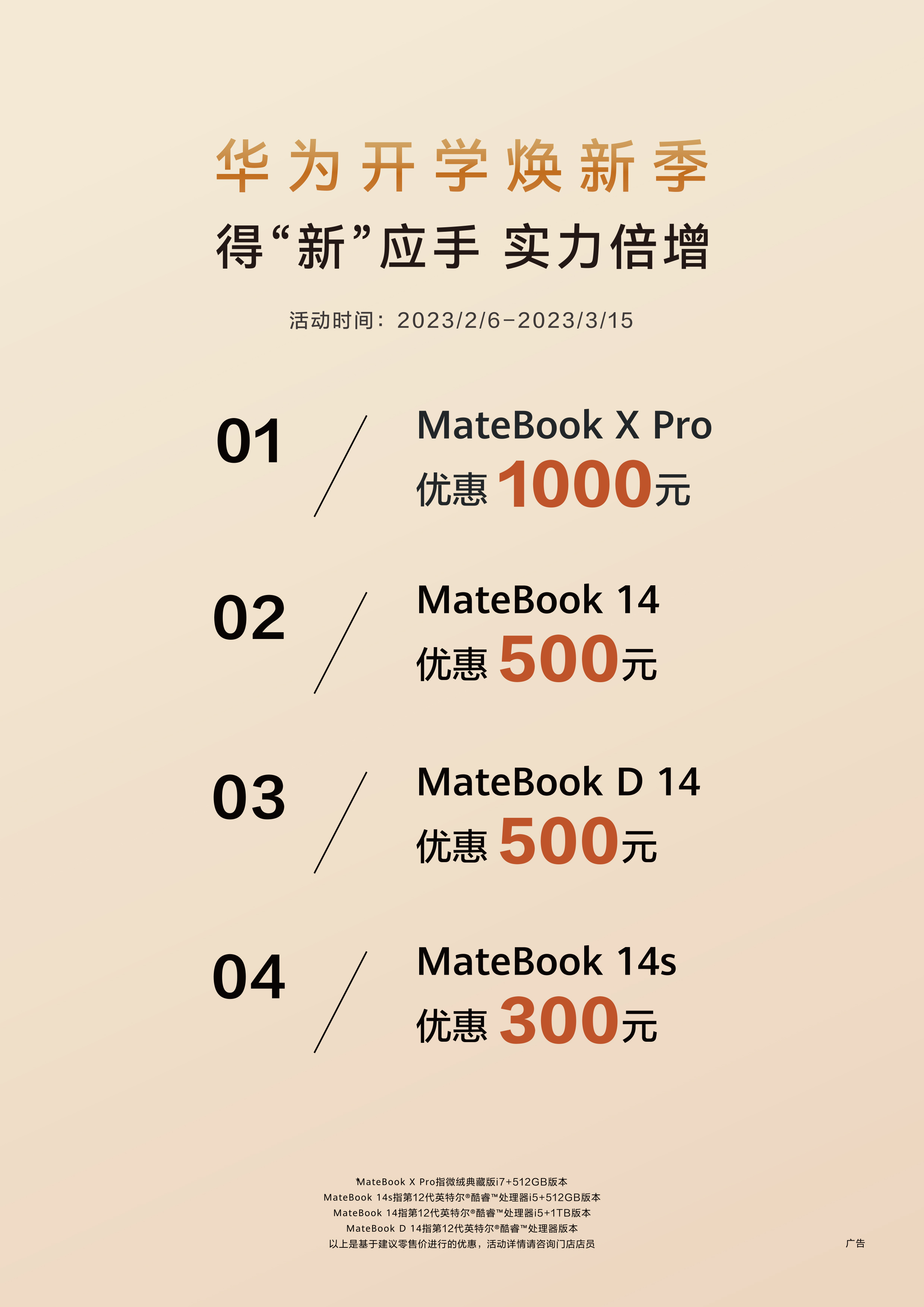 华为开学季,焕新好物至高优惠1000元
