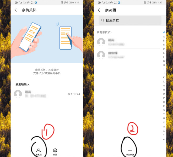 ②两个手机都打开“情亲关怀”软件,进行添加亲友,这样可以保证接通