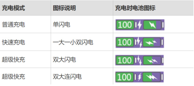 具有超级快充功能的充电器在连接手机几秒后,手机界面会提示:“正在超级快充”且图标是双大连闪电。具有快速充电的充电器在连接手机后,手机界面会提示:“正在快速充电”且图标是一大一小双闪电。“普通充电则显示一个闪电符号”