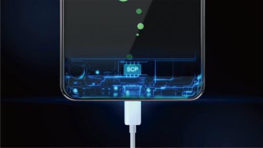 支持超级快充的手机配备智能充电芯片,能通过直充 SCP 协议,让手机侧直接与充电器进行实时通信,识别充电器与充电线的负载能力差异,在充电过程中根据电池电压的需求,智能协调最高效的电压和电流。避免手机内部再次变压带来的不必要的效率损耗。