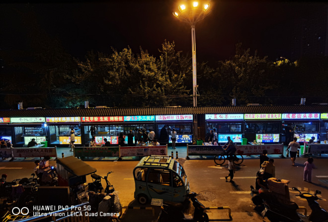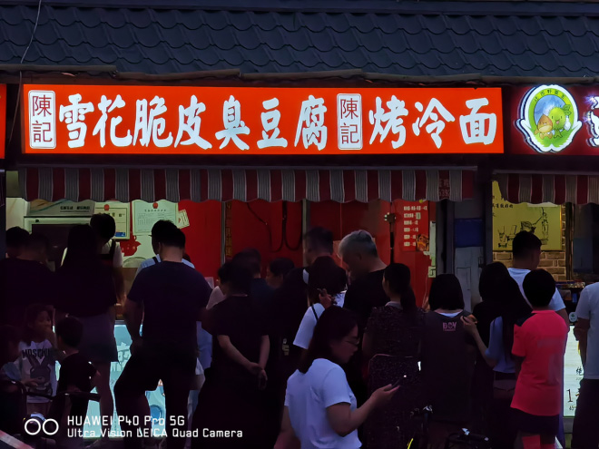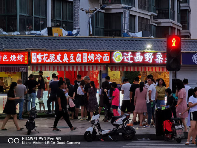 热闹的小吃一条街,华为P40Pro的抗炫抑噪的能力很强。