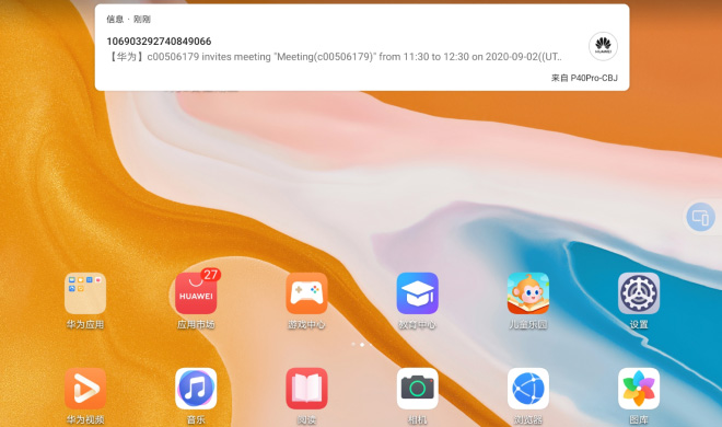 平板移动办公或者影音娱乐时,不会错过手机消息。来自手机的消息通知会在平板消息通知栏提醒,点击消息通知,一步直达手机消息应用。