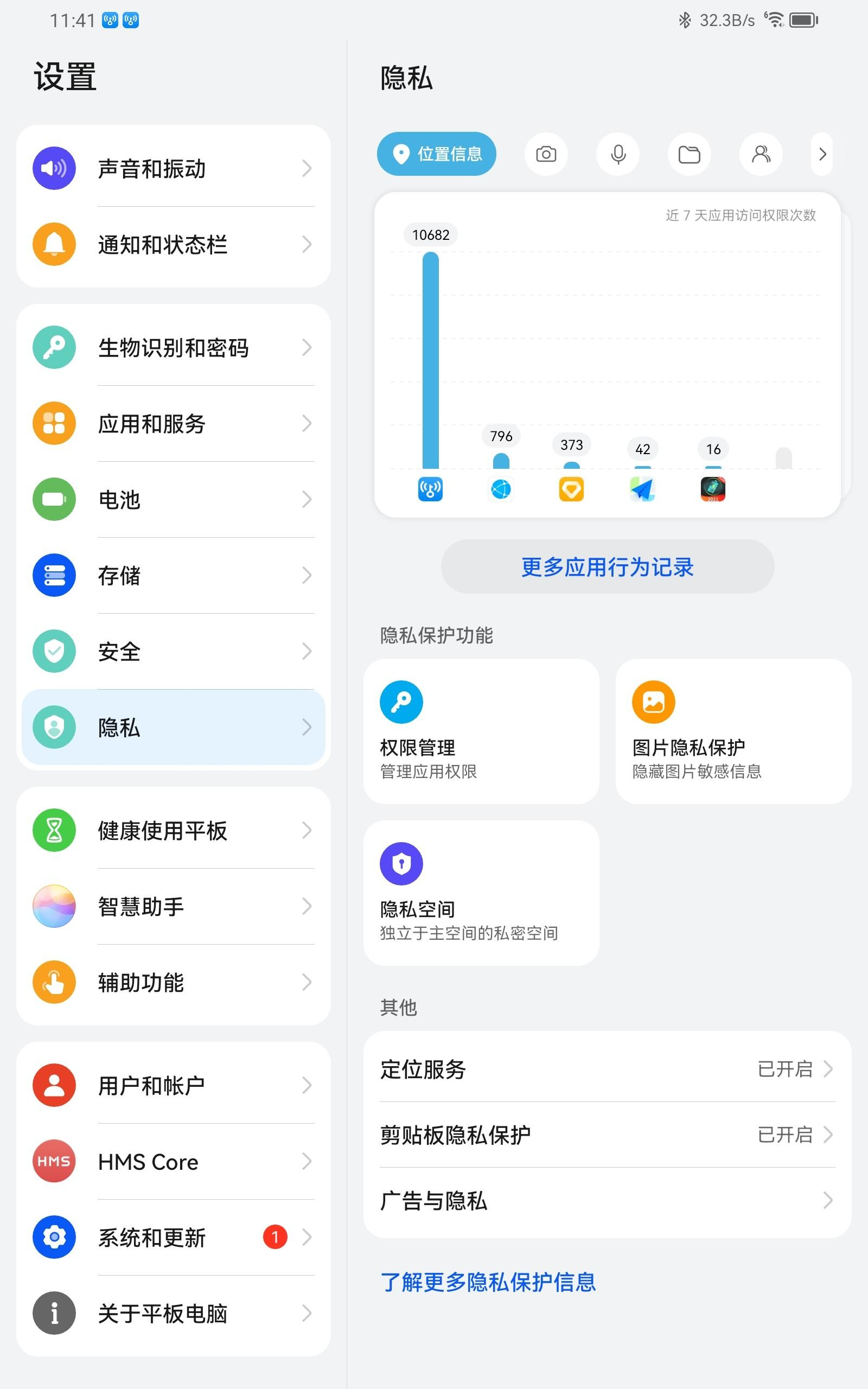 在隐私中心里,各种APP访问不同权限的次数清晰地呈现,如果想要便捷查看次数,可以在桌面设置服务卡片。