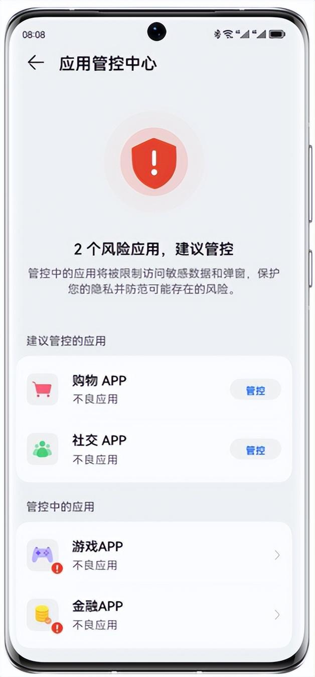 即使病毒软件是用户自己安装到手机里,系统检测到该应用属于病毒软件后会建议将该应用加入应用管控。
